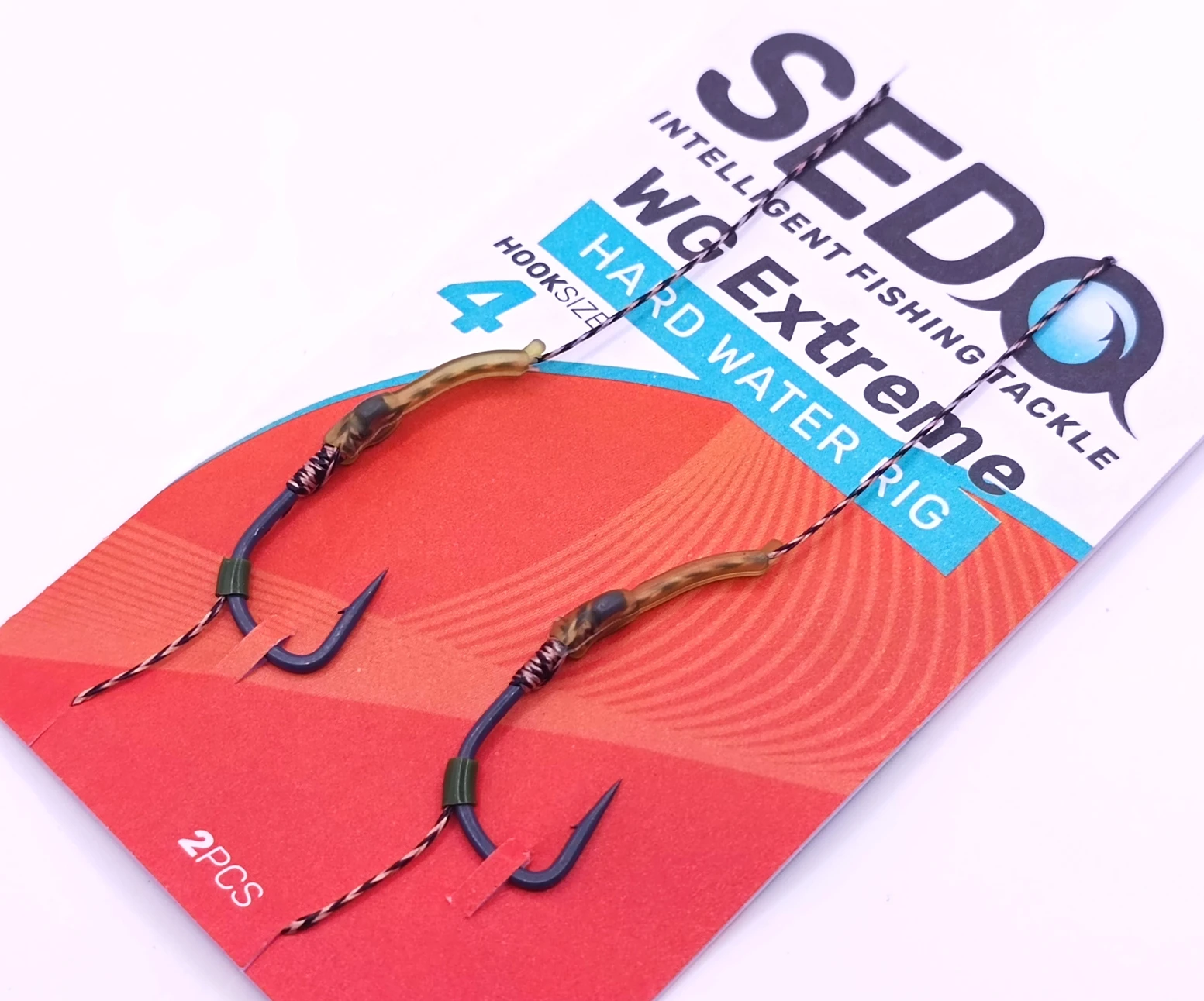 Das SEDO WG Extreme Hard Water Carp Rig verfügt über tolle Eigenschaften mit einem weichen Riemen und Bissen. Das Design des verlängerten Rigs beinhaltet einen langen Haken und einen langen Aligner, jeder Biss verändert einen starken Hakenhalt und -lauf. Empfohlen für jede Art von Wasser, überall. Geeignet für jeden Partikel- oder sogar extragroßen Haken.